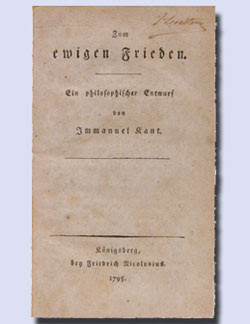 Kant: “La paz perpetua”, escrito en el plácido ambiente propiciado por la Paz de Basilea, firmada por Francia y Prusia en el año 1795.