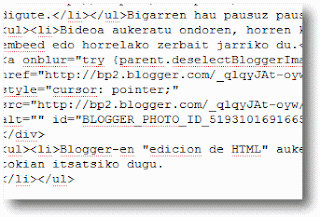 Orain “edicion html” horretan bi hitz horiek bilatu eta kurtsorea erdian jarri